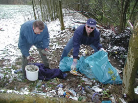und holten im Bereich Köhlerweg jede Menge Müll aus dem