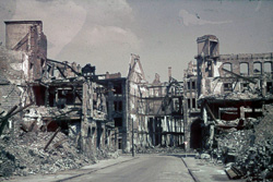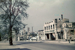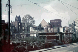Südwestfale, an der Schwanenstrasse. Im Vordergrund zerbombte